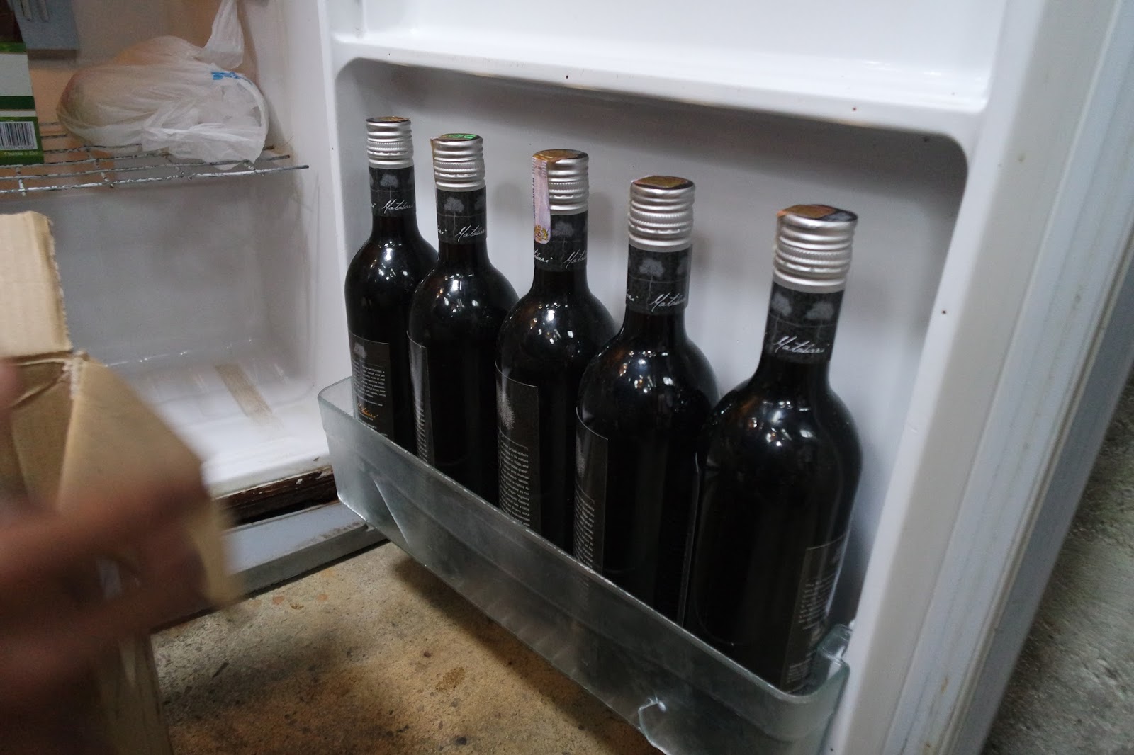 Chilling up the wine in the fridge before we get started on our day.